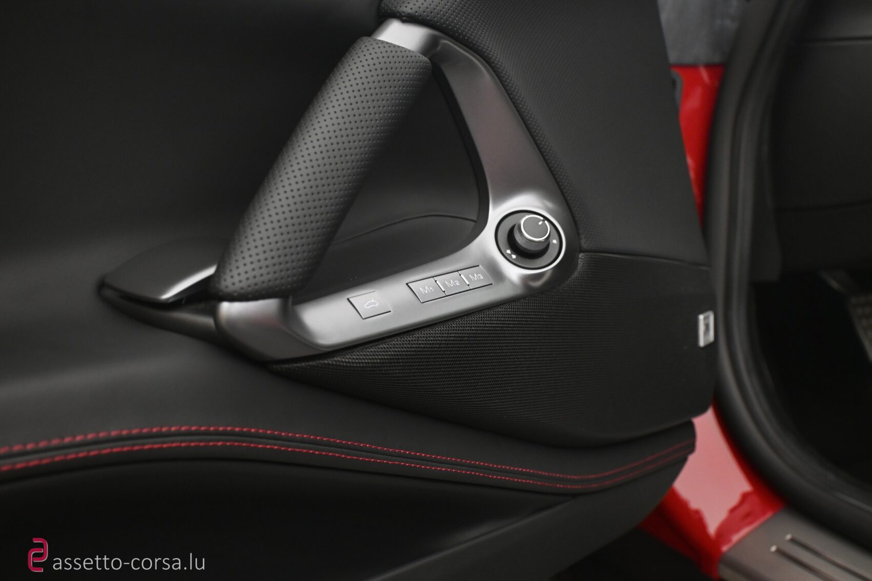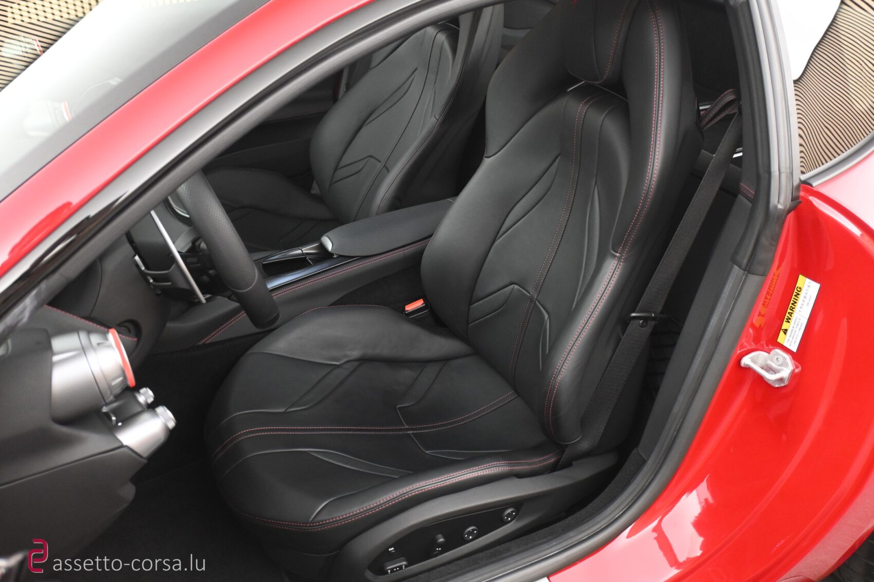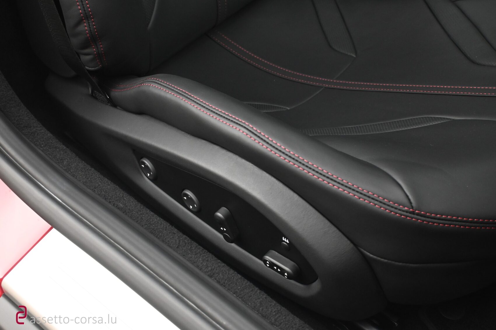 Farbe Interieur: Leder in Schwarz (Nero 8500) mit rotem Stitching (Bordeaux 0106)